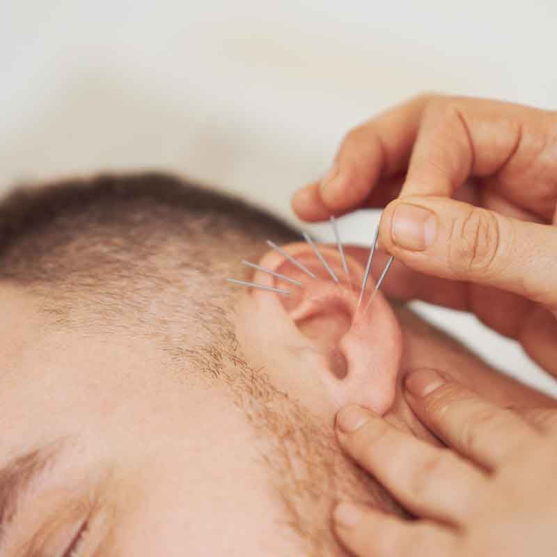 Targeted acupuncture points in the ear to reduce stress, pain, and cravings.
